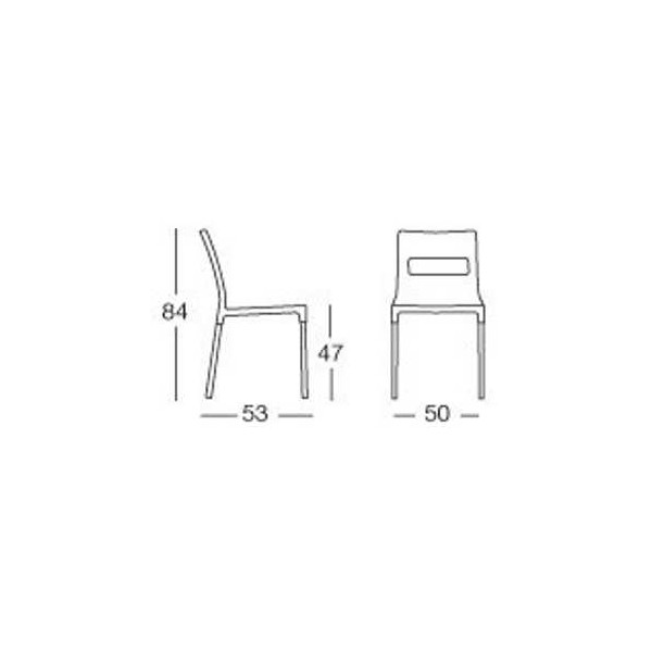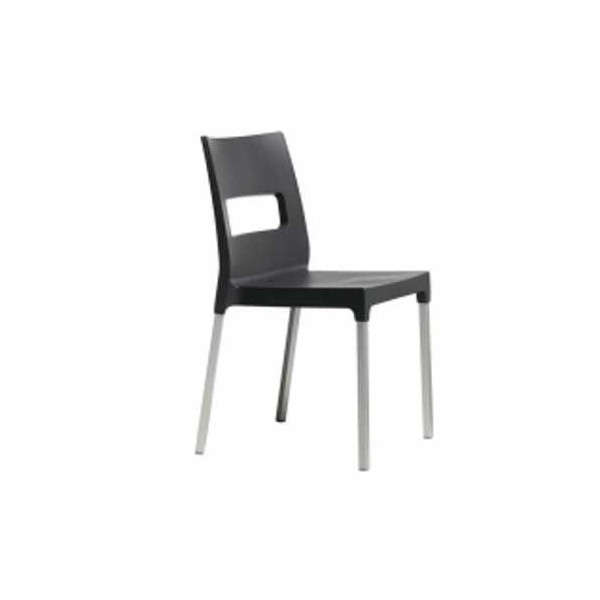 La seduta è in tecnopolimero mentre le gambe a sezione quadrata da mm 22x22 sono realizzate in alluminio anodizzato.