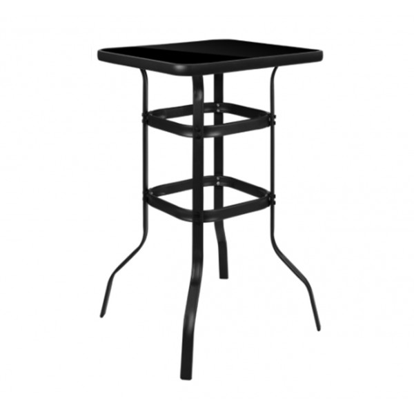 STROMBOLI H100 - Tavolo alto 70x70xH100cm in metallo verniciato nero e vetro temperato 5mm di colore nero per giardino, veranda, casa, bar, pub, ristorante, pizzeria, pasticceria al miglior rapporto prezzo-qualità.