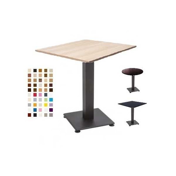 Tavoli Enzo robusti ed eleganti 60x60cm, 70x70cm, 80x80cm, diam. 60cm, 70cm, 80cm in colori uni (bianco, nero, rosso, ecc.) o legno venato ( wengè, ciliegia, ecc.) e base in ferro per bar, pizzerie, alberghi, pub, ristoranti al miglior rapporto prezzo - qualità.