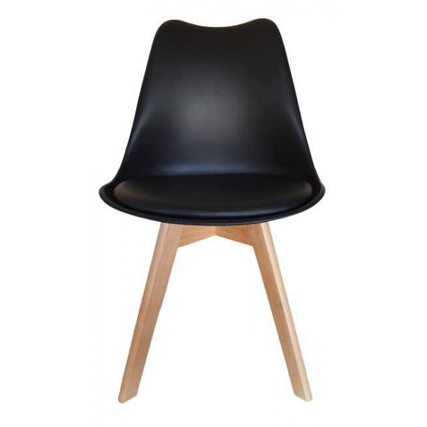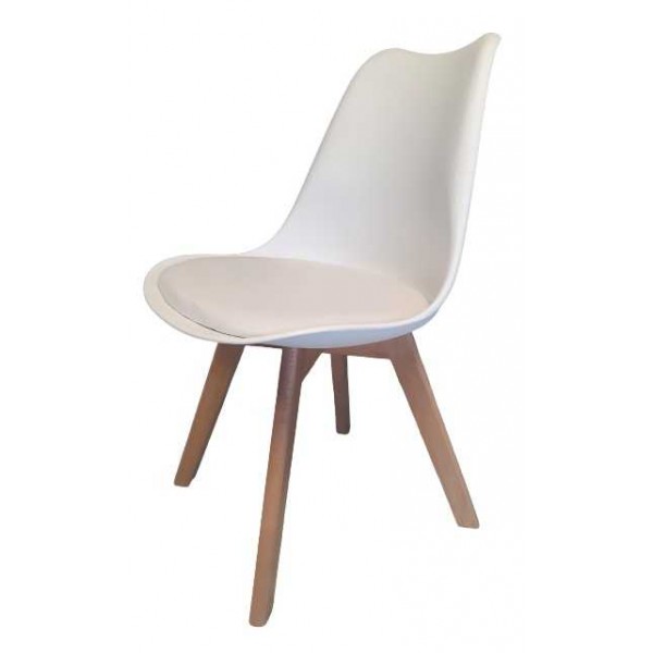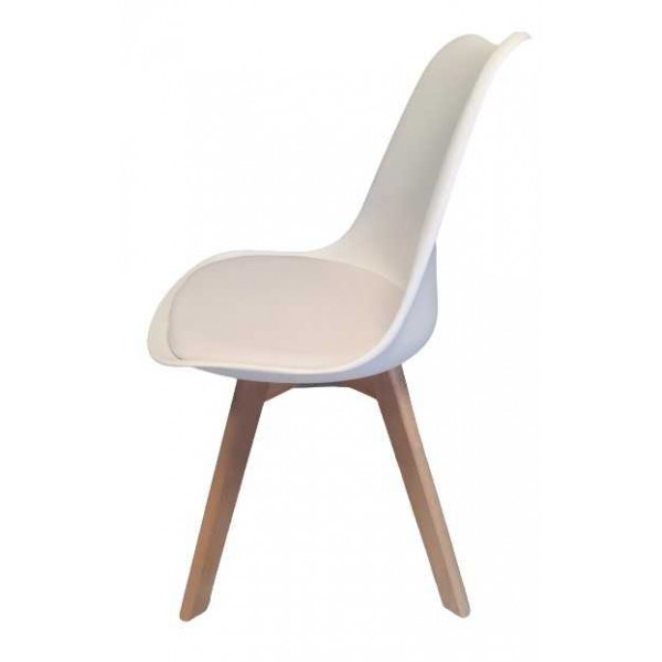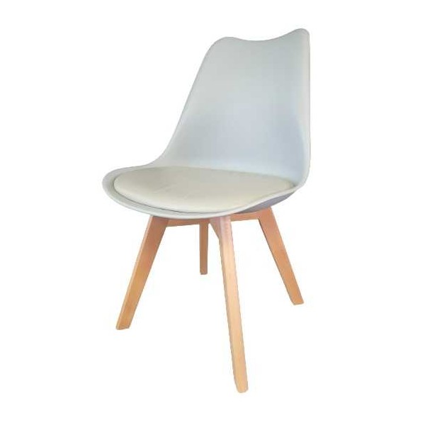 Sedie stile scandinavo modello LEA in polipropilene, seduta imbottita in ecopelle, piedi quadrati incrociate in faggio verniciati colore naturale, economiche e moderne per giardino, veranda, casa, bar, pub, ristorante, pizzeria, pasticceria al miglior rapporto prezzo-qualità.