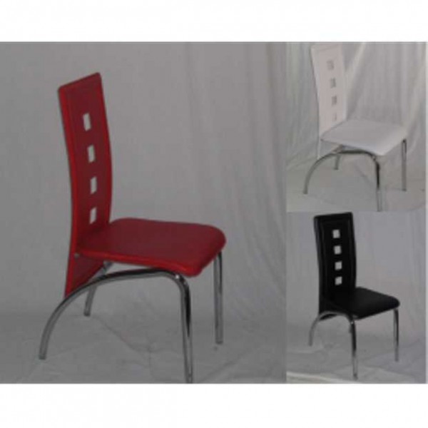 Sedie eleganti, robuste, comode e moderne imbottiti in similpelle bianco, nero, rosso, struttura metallo cromato ottimo rapporto prezzo-qualità, per casa, cucina, soggiorno, ufficio, sala d'attesa, sala conferenze, bar, ristorante, pub, pizzeria, gelateria, pasticceria, negozio, albergo, discoteca.