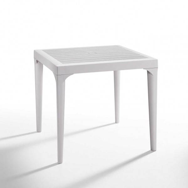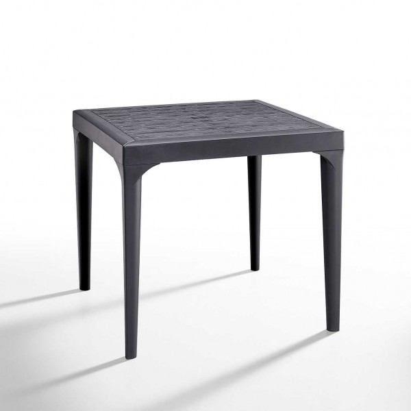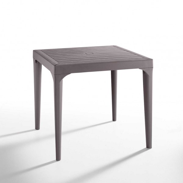 Tavolo impilabile in polipropilene con effetto legno sul piano. Design moderno per giardino, veranda, casa, bar, pub, ristorante, pizzeria, pasticceria, catering, matrimonio wedding al miglior rapporto prezzo-qualità.