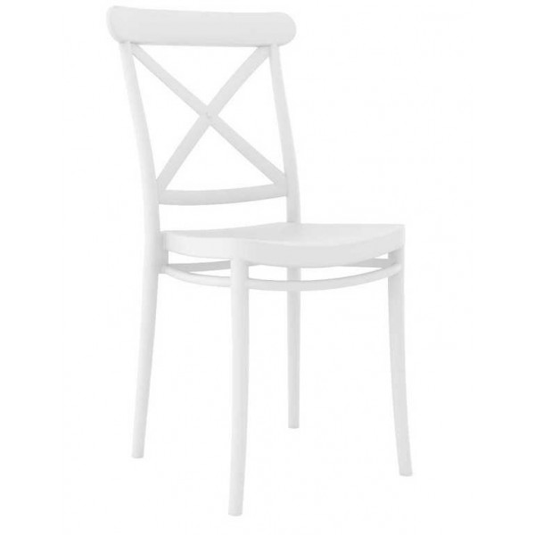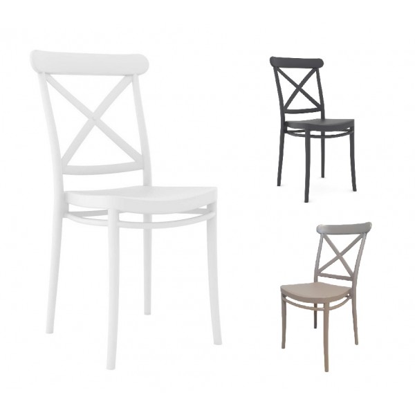 Sedie in polipropilene rinforzate con fibra di vetro impilabili economiche stile retrò paesana vintage con schienale a croce per giardino, veranda, casa, bar, pub, ristorante, pizzeria, pasticceria, catering, matrimonio wedding al miglior rapporto prezzo-qualità.
