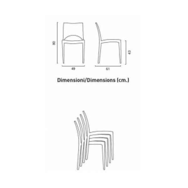 Sedie in polipropilene impilabili da esterno, economiche e moderne per giardino, veranda, casa, bar, pub, ristorante, pizzeria, pasticceria al miglior rapporto prezzo-qualità. Sedia PARIS in polipropileneᅠadatta sia per ambienti interni che esterni, impilabile, robusta e leggera.