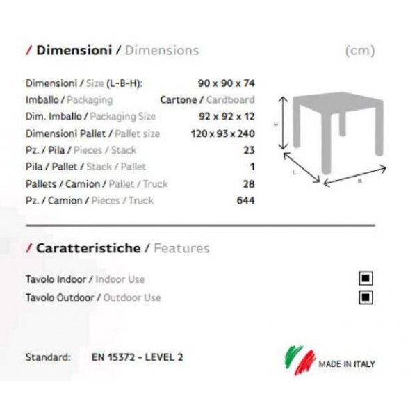 TAVOLO PER USO INTERNO ED ESTERNO Costruito in polipropilene, Ares è un ottimo tavolo quadrato che grazie alla sua eleganza risulta adatto a qualsiasi impiego, interno o esterno. Estremamente solido e robusto è dotato di un design semplice e lineare, il tavolo Ares vi permette di arredare i vostri ambienti in modo elegante e confortevole. Un tavolo facile da montare che combina comfort, funzionalità e design.