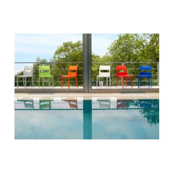 Sedie certificate in polipropilene impilabili da esterno, economiche e moderne per giardino, veranda, casa, bar, pub, ristorante, pizzeria, pasticceria al miglior rapporto prezzo-qualità. SAI è una sedia ergonomica e impilabile con struttura in polipropilene rinforzato inᅠfibra di vetro, stampata ad iniezione con tecnica air moulding.